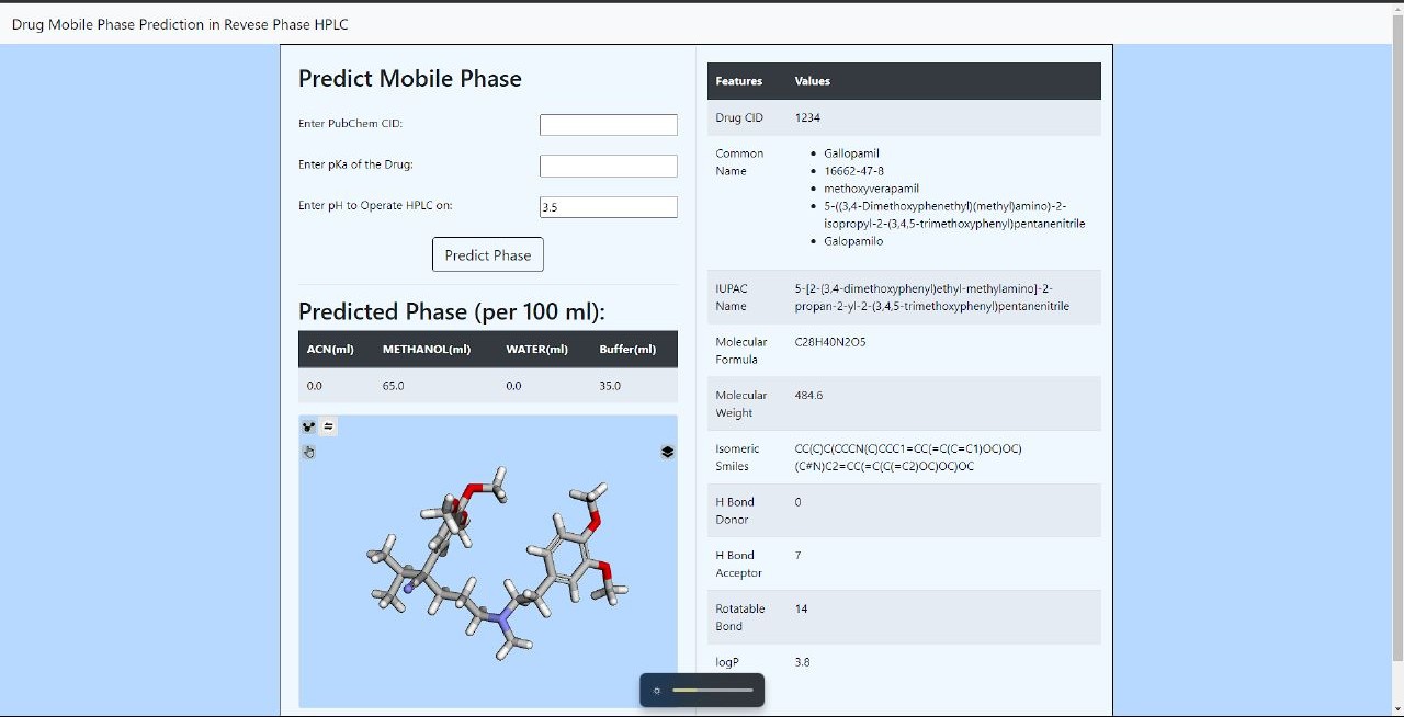 I built a Flask web application to allow users to input molecular details and obtain predictions. The UI includes: