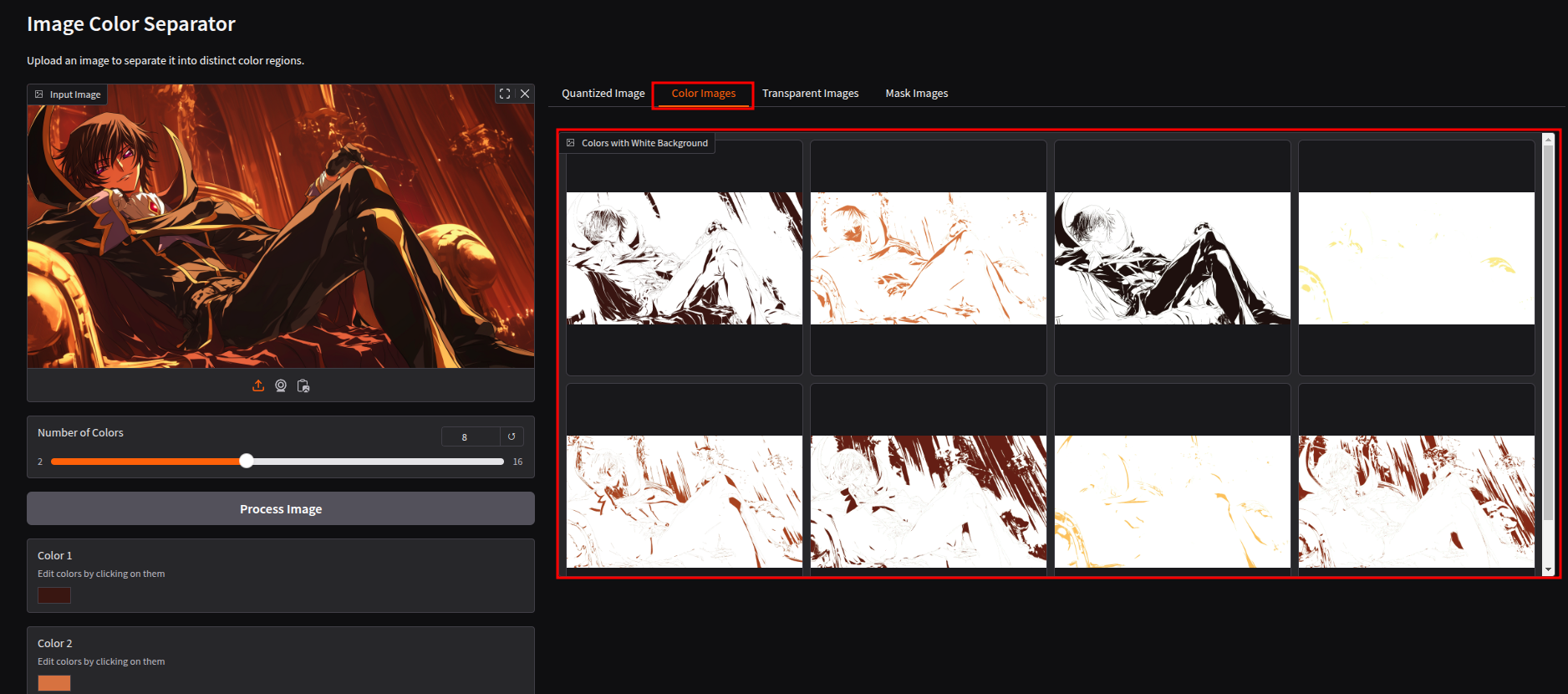 - Process the Image: Click the “Process Image” button to analyze and separate the image.