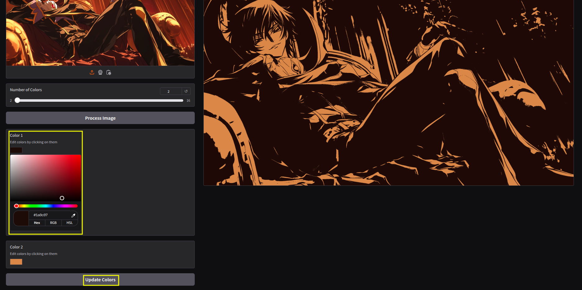 - Adjust the Number of Colors: Use the slider to set how many colors the image should be quantized to (range: 2-16).
